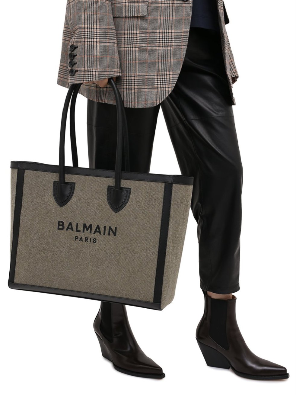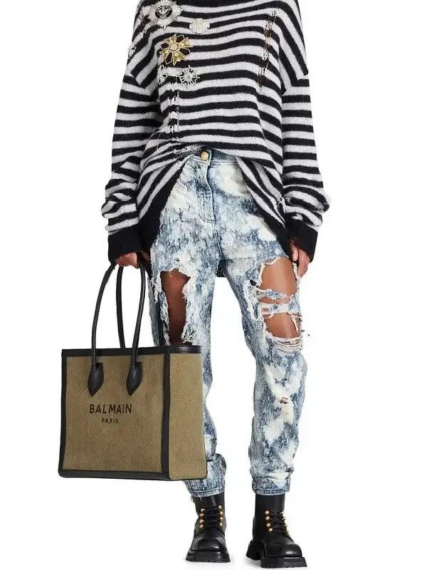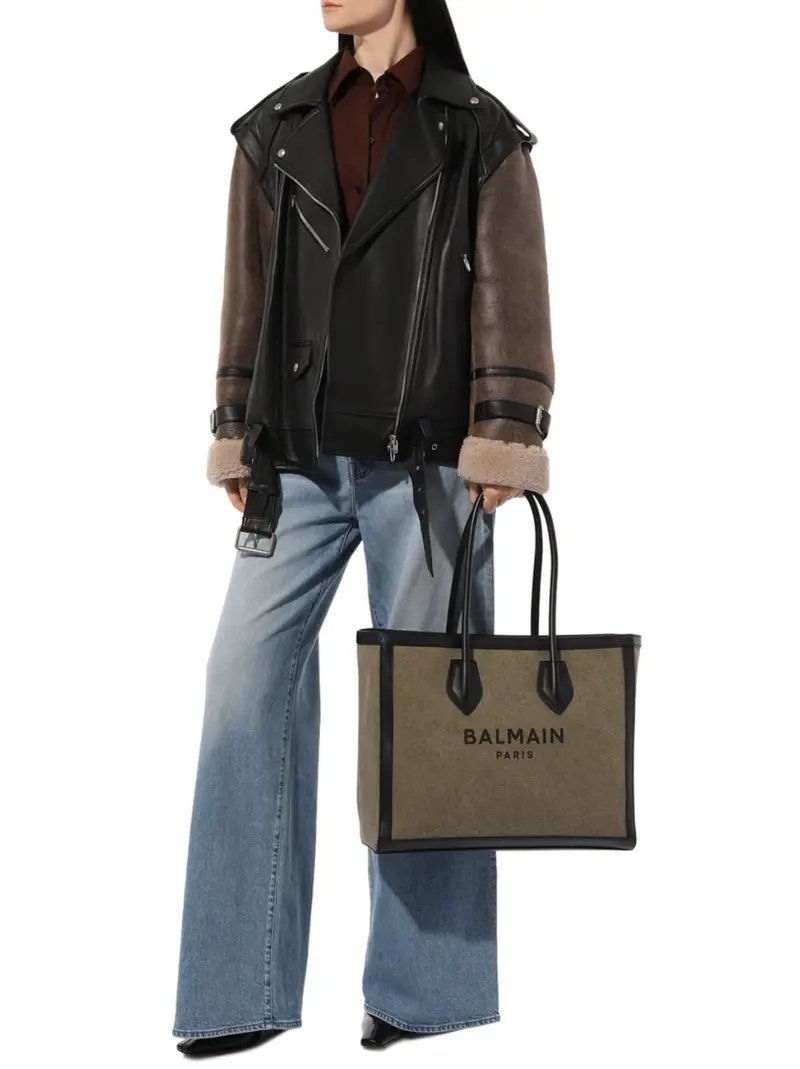 BALMAIN B Army 42 Canvas Shopper Bag With Leather panelss