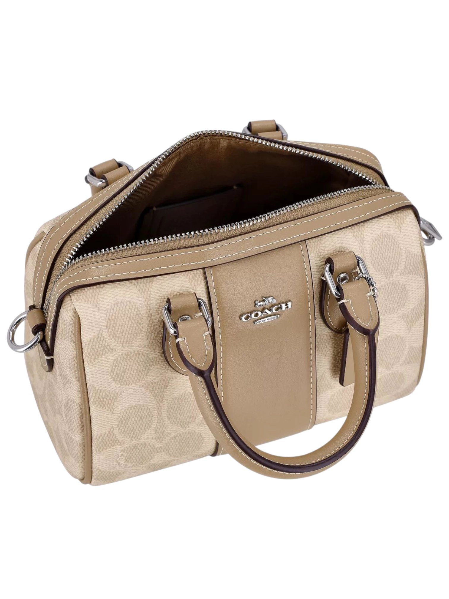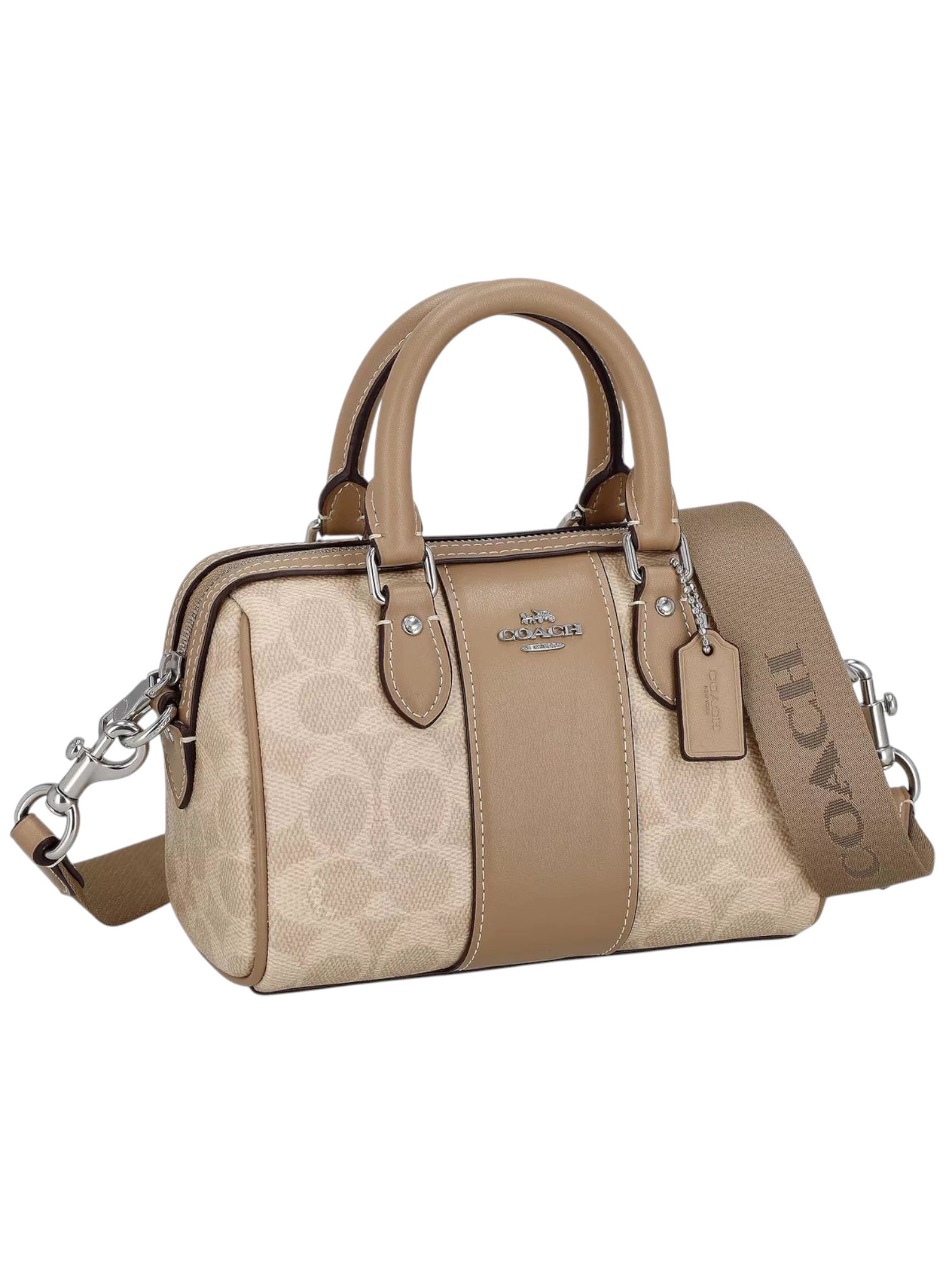 Coach Rowan Satchel Bag In Signature Canvas With Painter Teddy Bear Charm