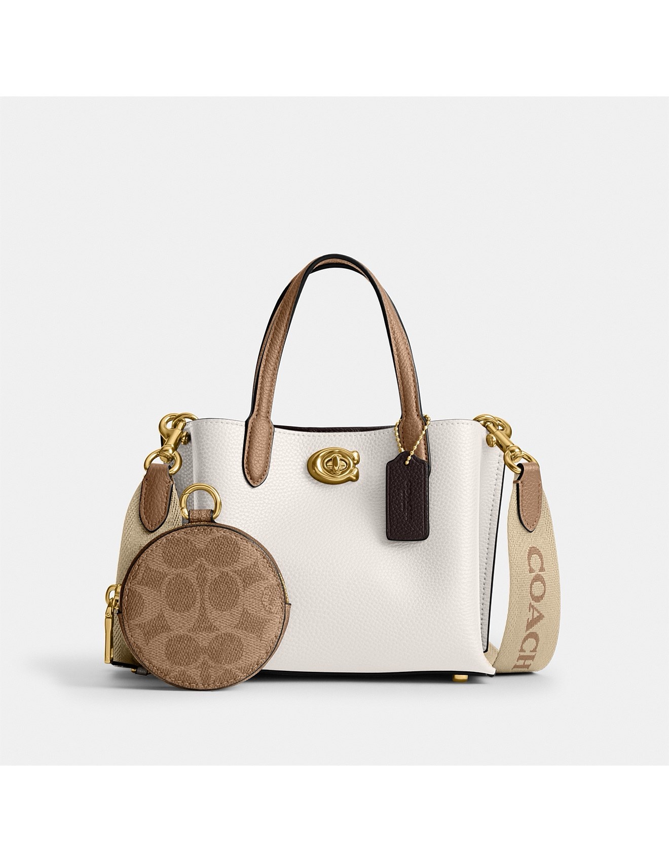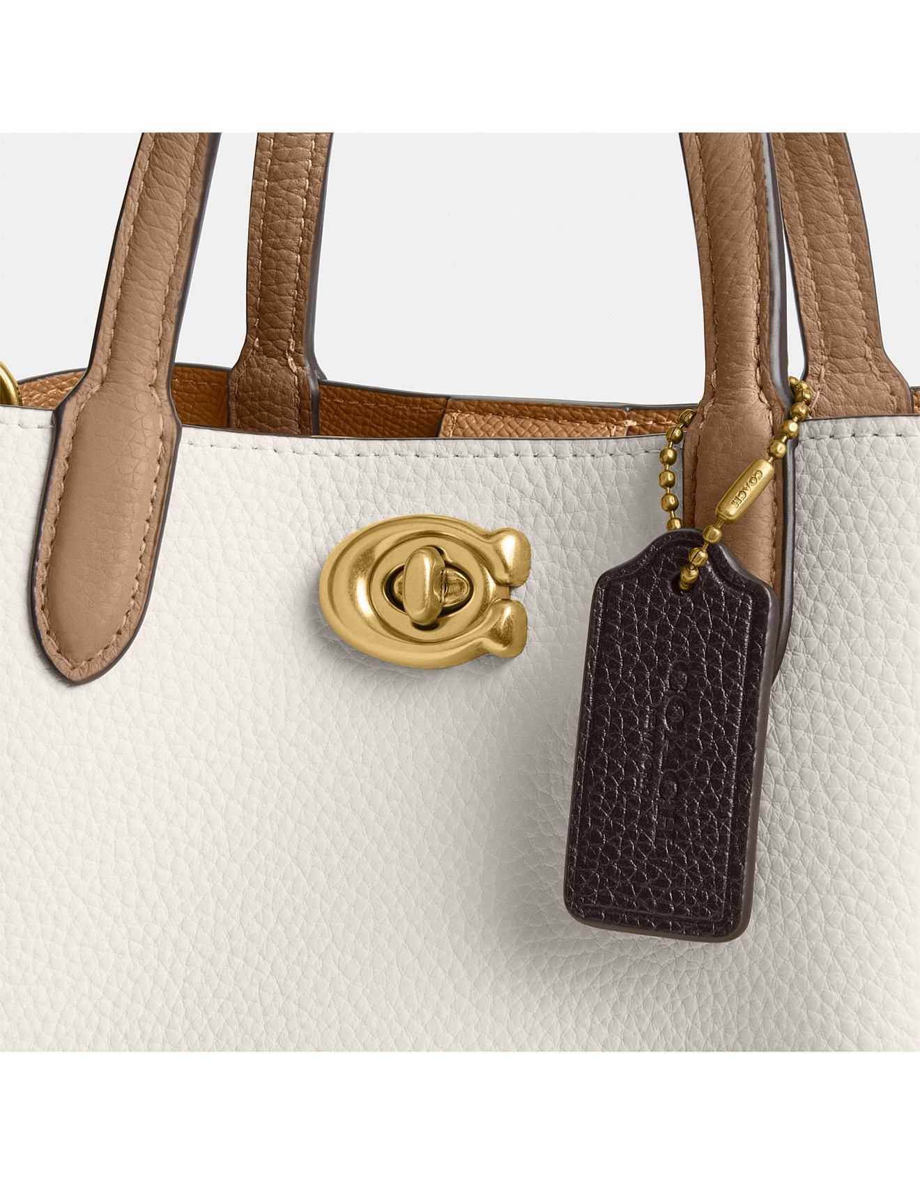 The Willow Tote crafted of polished pebble leather, is the perfect mini tote for your day-to-day essentials. The 18 features two open pockets, a secure center zip compartment and the Signature turnlock closure. Carry it by the top handles or wear on the shoulder and crossbody with the detachable strap.